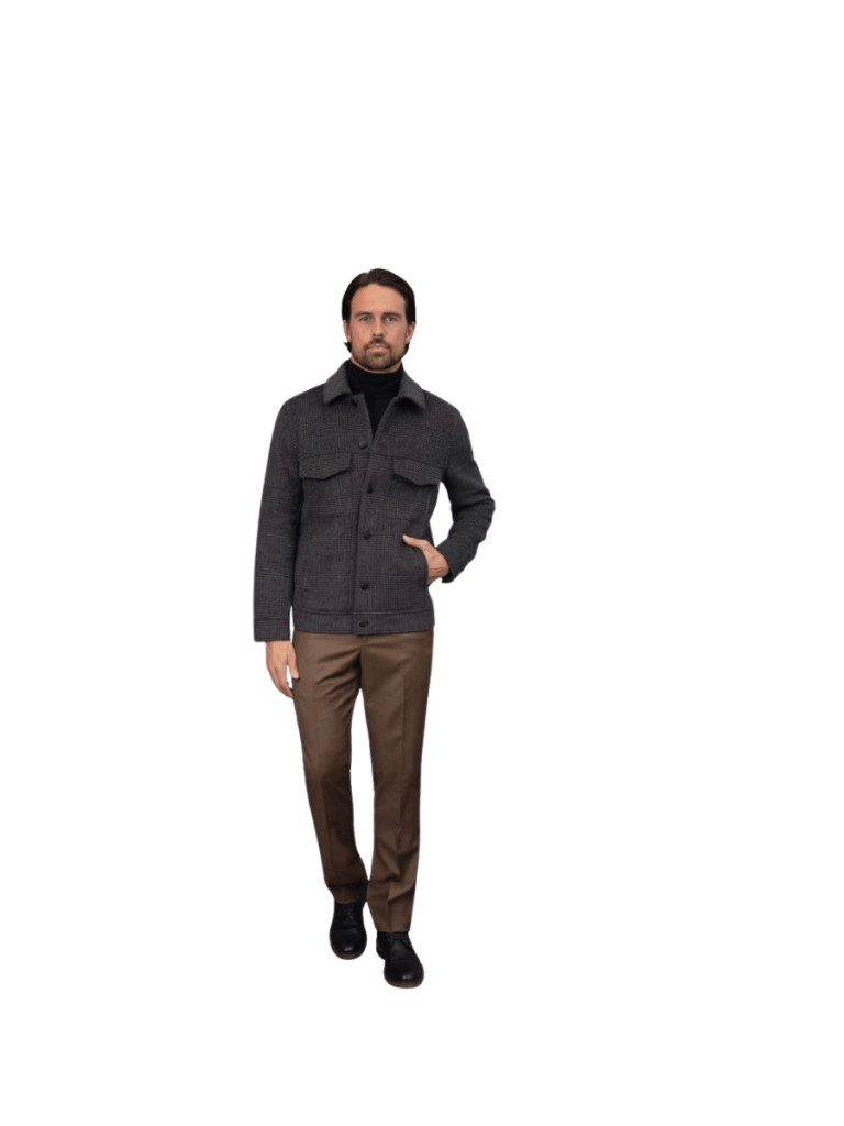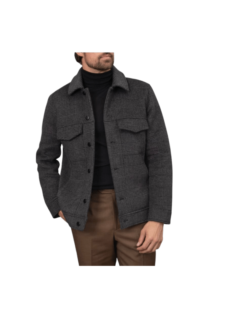 This double-faced wool-blend jacket is designed for a man with a minimalist and refined style. It provides an ultra-luxurious finish for everyday wear. A lightweight jacket in a charcoal houndstooth shade that can be worn as a layering piece for work or casual weekend outfits for an elevated casual look.