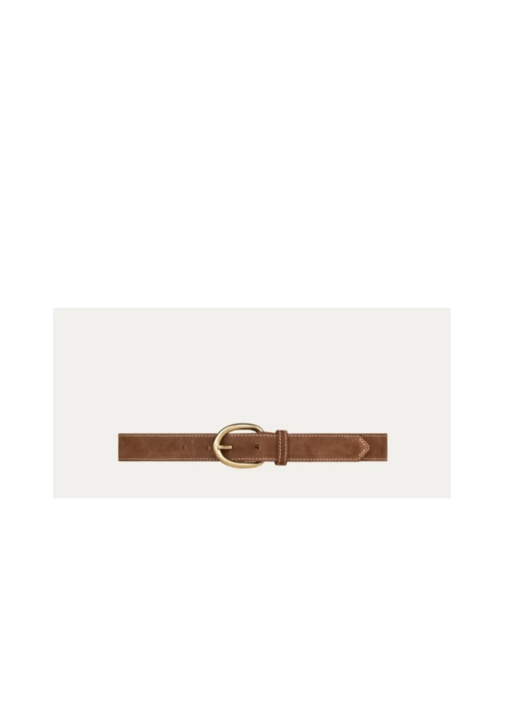 This artisanal belt embodies quiet luxury at its finest. The soft suede construction in a sophisticated taupe hue adds a luxurious element, while the brass hardware adds warmth and character without being garish.