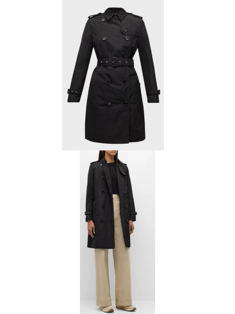 The Burberry trench is an iconic pinnacle of British luxury and timeless style. The double-breasted design, storm shield, and signature details make it both functional and chic.
