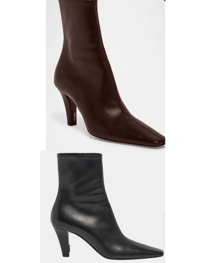 These Saint Laurent booties epitomize Parisian luxury with a sleek silhouette and smooth calf leather. The construction ensures comfort while the sophisticated design adds instant elegance.