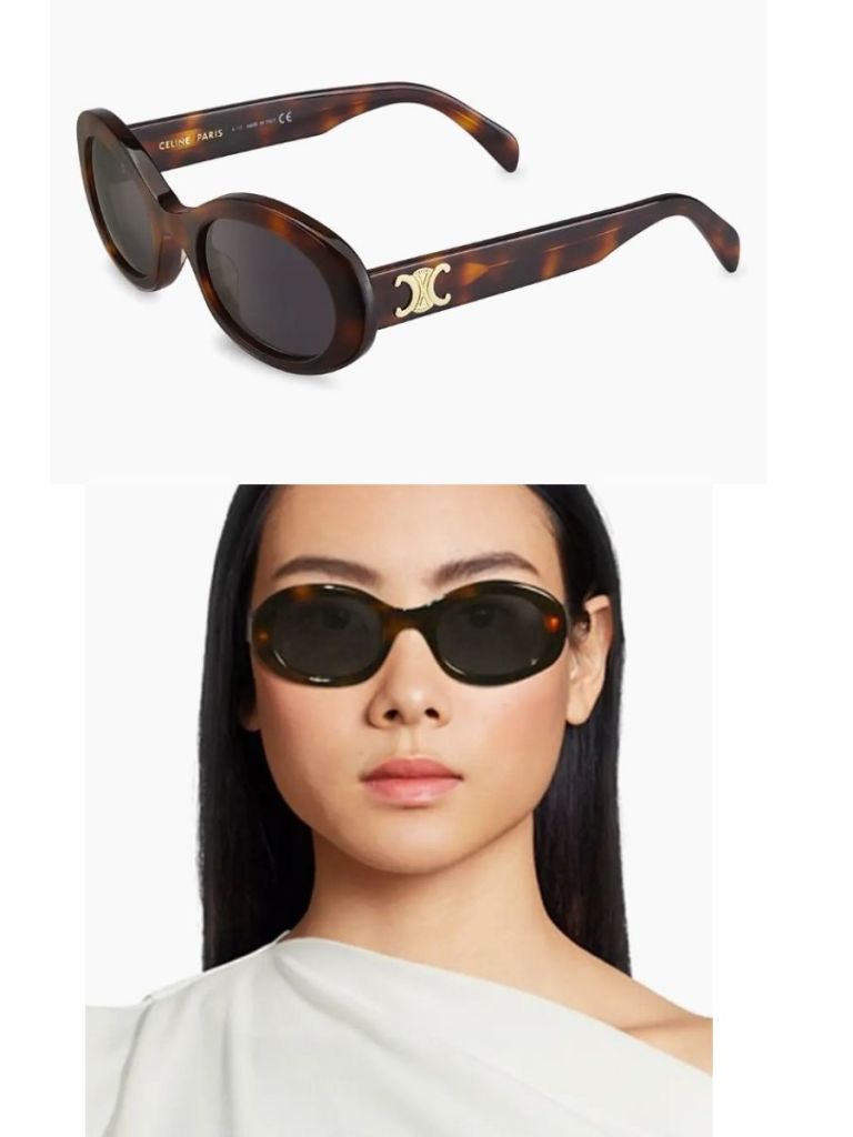 These Celine sunglasses showcase Parisian sophistication with a classic oval shape and a rich tortoiseshell frame. The Triomphe hardware adds subtle brand recognition while maintaining elegance.