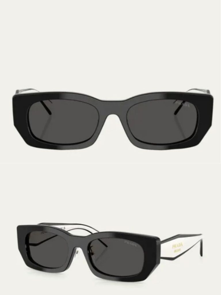Prada’s innovative pillow frame design creates a modern twist on classic black sunglasses. The unique shape is both fashion-forward and universally flattering. These sunglasses feature a stunning geometric design, with the Prada Milano logo elegantly displayed on the temples.